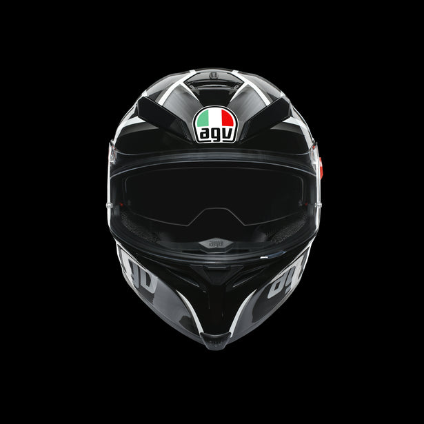 AGVs latest version of this premium sport helmet now features a new construction for the inner liner, designed with high-performance fabrics and with no stitching in sensitive areas, making for an extremely comfortable fit.The lightweight shell is made from a carbon-fi berglass mix, while stability and aerodynamic performance are maximized thanks to an incorporated spoiler. The Integrated Ventilation System (IVS) has vents that are hollowed into the shell, and theres also an internal drop-down sun visor, a removable nose guard and a new wind protector that keeps noise to a minimum.